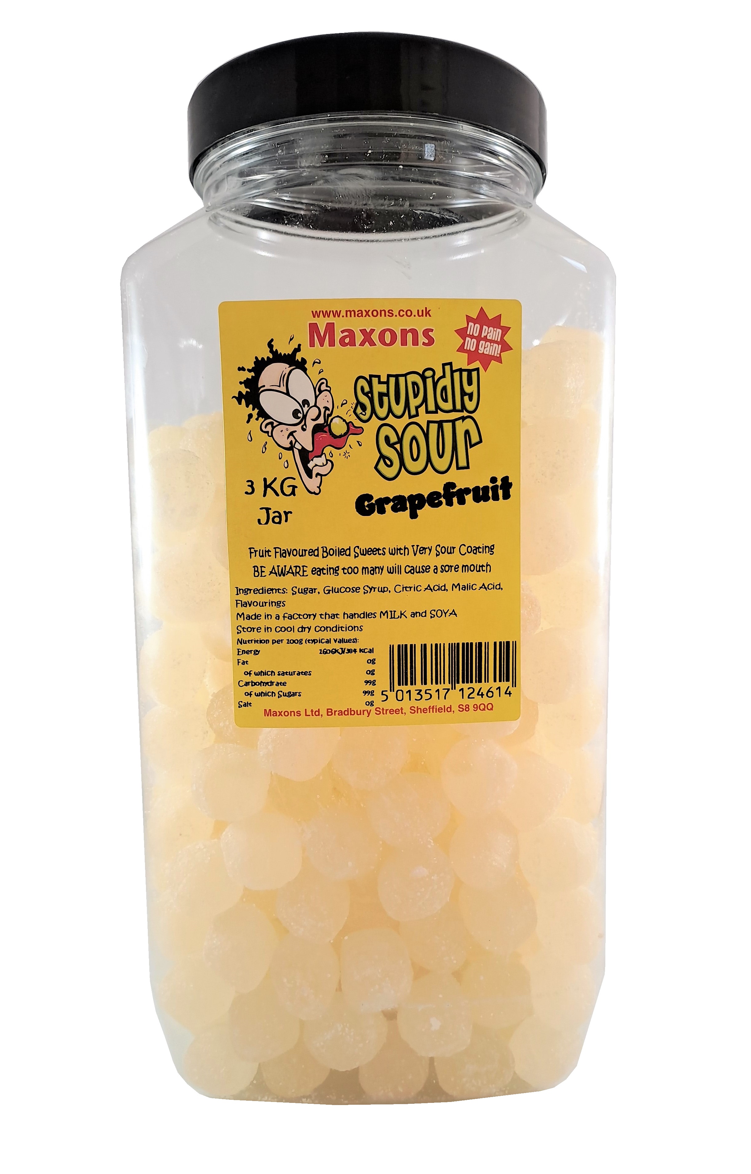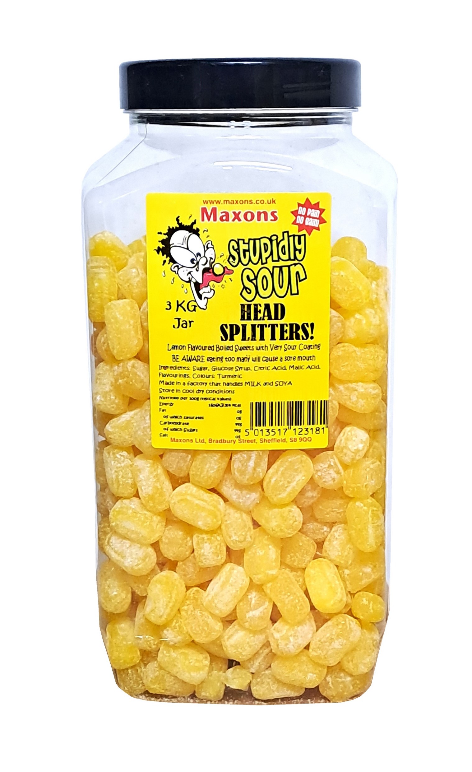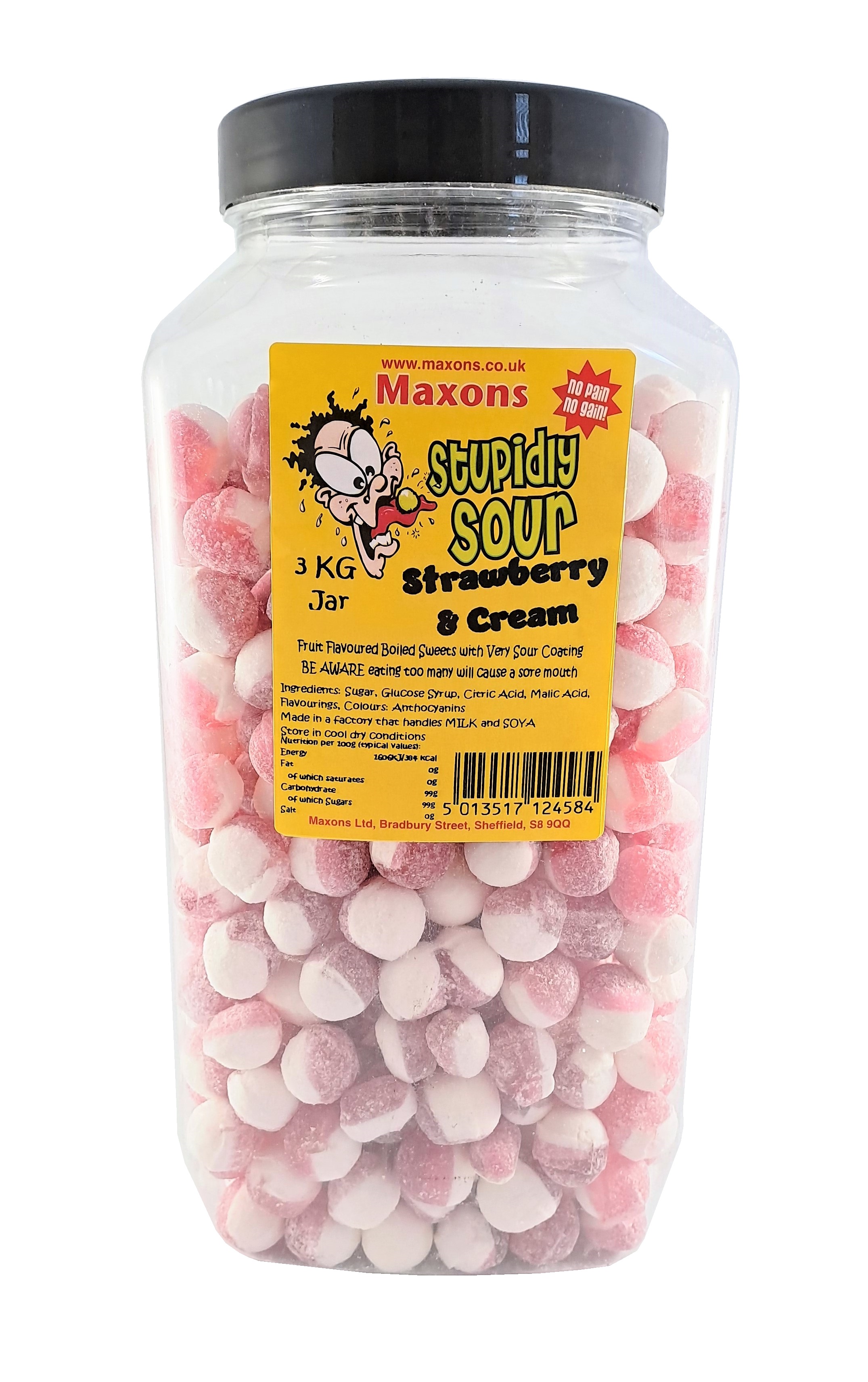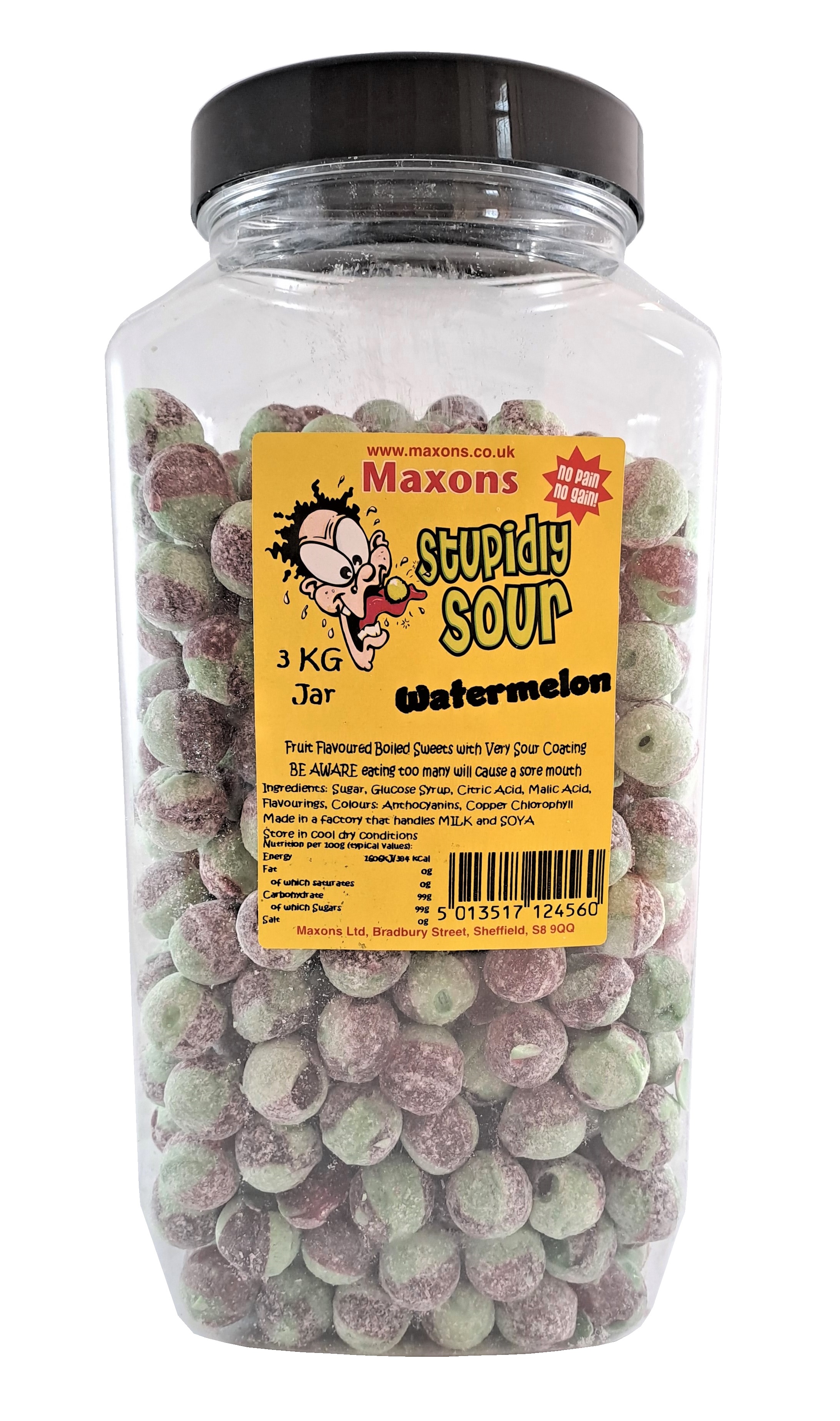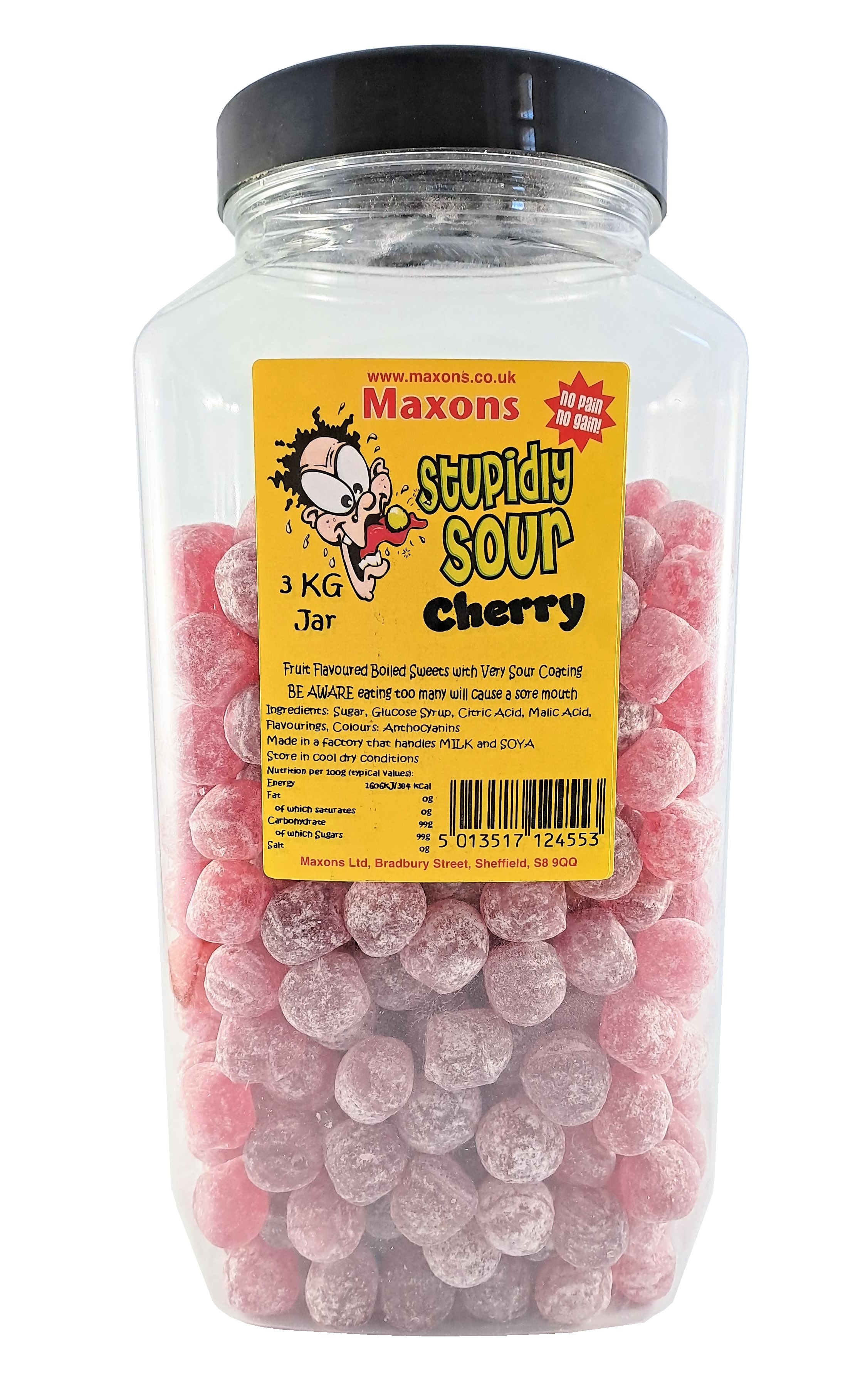 All the Stupidly Sour family of products packed in 3kg old fashioned sweet shop jars